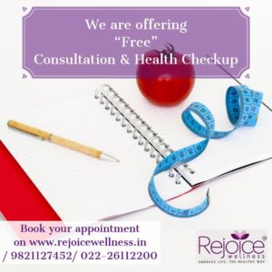 Apr 25 “Consultation and Health Check up” worth ₹1000/- absolutely “FREE” ! Dr Asmita Sawe Health Tips Get “Consultation and Health Check up” worth ₹1000/- absolutely “FREE” ! Book your appointment on www.rejoicewellness.in / 9821127452/ 022-26112200